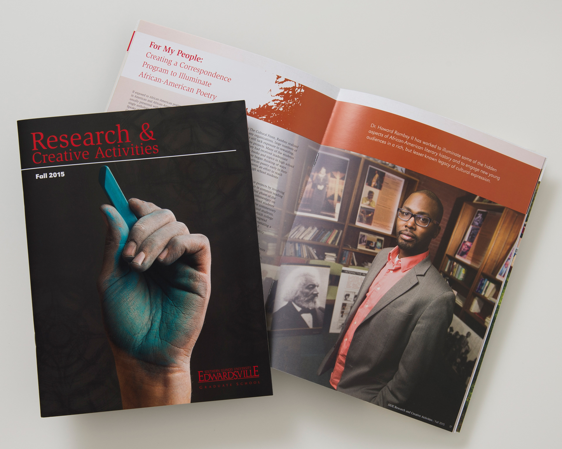 The Research and Creative Magazine is created every year through the SIUE Graduate School. I designed and art directed all aspects of this magazine, including ideation of each cover.
